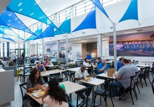 The Monmouth Service Area building incorporates a Jersey Shore theme with beach, boardwalk, and nautical design elements throughout. The newly built 15,800 square foot service area accommodates seating for 150 guests inside, with outdoor patio seating available for more than three dozen.